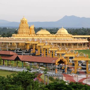 Sripuram spreads over 60 acres of land planted with a large variety of trees, breathtaking Landscape, Fountains, Eco-pond, Cascade Pathways in the shape of the Sri Chakra, lined with Scriptures from various religions of the world. At the very centre of the Sri Chakra pathway stands a Majestic Temple. This spiritual path is meant to foster greater reverence towards other religions. This Sripuram – Spiritual Park is Amma’s dedication to the World and all of Mankind. Please visit www.sripuram.org for more details.